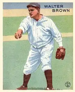 Brown was born in Greene, Rhode Island, on April 30, 1907.[2] He began playing sandlot ball in Brockton, Massachusetts, where he was discovered by a scout for the Chicago Cubs, who signed him. Manager Rabbit Maranville was particularly interested in the scout's report.[3][4] Brown made two appearances for the Cubs on a trial basis, playing his first game on August 26, 1925.[2][5] Maranville quit as manager, and the new manager, George Gibson, released Brown before the end of the 1925 season.[3] Brown went to the minor leagues in 1926, playing for the Sarasota Gulls of the Class D Florida State League. He started the 1927 season with the Gulfport Tarpons of the Class D Cotton States League. In July, he was traded to the Cleveland Indians for Benn Karr.[6] He appeared in eight games for Cleveland, pitching to a 6.27 ERA.[7] Brown had his tonsils removed during the 1927–28 offseason, causing him to gain 68 pounds (31 kg).[8] His weight continued to fluctuate throughout his career, reaching a reported high of 295 pounds (134 kg).[3]