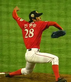 Jun Byung-doo (Korean: 전병두; Hanja: 全炳斗; born October 14, 1984 in Busan, South Korea) is a South Korean left-handed starting pitcher. He pitched in the KBO League for the Doosan Bears, Kia Tigers, and SK Wyverns