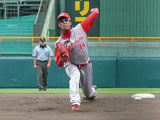 Junpei Shinoda (篠田 純平, Shinoda Junpei; born April 20, 1985)[1] is a Japanese Nippon Professional Baseball player. A pitcher, he is currently with the Hiroshima Toyo Carp in Japan's Central League.