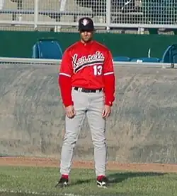 ![]() Baughman as a coach with the Cedar Rapids Kernels in 2005 | |