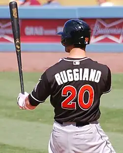 On May 26, 2012, Ruggiano was traded to the Miami Marlins for minor league catcher Jobduan Morales.[7] He was called up to Miami the next day, and Kevin Mattison was optioned to Triple-A.[8] After playing well in June, Ruggiano heated up in July. He ended the first half of the season with six home runs (four in the last six games), 17 RBI, and a batting average of .390. On September 21, Ruggiano injured his shoulder in the fifth inning in a game against the New York Mets. He finished the season batting .313 with 13 homers, 36 RBIs, 23 doubles, a .374 on-base percentage(OBP), and a .909 on-base slug percentage(OPS).