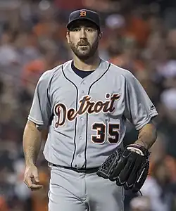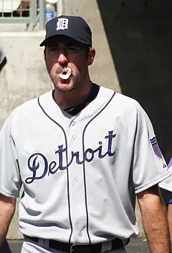 Born in Manakin Sabot, Virginia, Verlander attended Old Dominion University (ODU) and played college baseball for the Monarchs. He broke the Monarchs' and Colonial Athletic Association's career records for strikeouts. At the 2003 Pan American Games, Verlander helped lead the United States national team to a silver medal. The Tigers selected Verlander with the second overall pick of the 2004 MLB draft, and he made his major league debut with the Tigers in 2005. He was the AL Rookie of the Year in 2006.[2] In 2007, Verlander pitched the first no-hitter at Comerica Park.[3] In 2009, he led the AL in wins and strikeouts, both for the first time. Verlander produced his most successful season in 2011, pitching his second career no-hitter[4] and winning the Pitching Triple Crown, the AL Cy Young Award (unanimously), the AL MVP Award,[5] and the Sporting News Player of the Year Award. Verlander played for Detroit for 12 years, becoming the ace in their starting rotation and a key figure in four consecutive AL Central division championships (2011–2014) and two AL pennants (in 2006 and 2012).