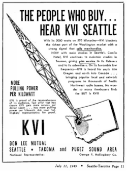 5. ^ "KVI" (advertisement), Broadcasting, July 11, 1949, page 11.