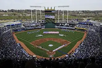 - ^ a b "History of Kauffman Stadium". KansasCity.Royals.MLB. Kansas City Royals. 2016. Archived from the original on May 11, 2013. Retrieved February 3, 2017.