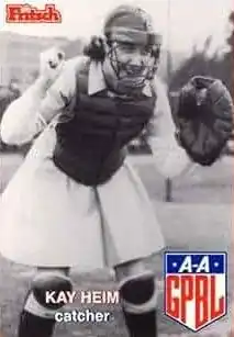 While she was a light-hitting catcher, Heim highlighted as a defensive specialist with good pitch-calling skills and possessed a strong, accurate throwing arm. She helped the Kenosha Comets win the pennant title the first year, though the team lost to the Racine Belles in the best-of-five Championship Round. The next year, she fractured an ankle during the midseason and missed the rest of the season.[3][4]