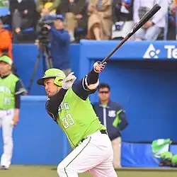 Kazuhiro Hatakeyama (畠山 和洋, Hatakeyama Kazuhiro; born September 13, 1982) is a Japanese former professional baseball infielder and current hitting coach for the Tokyo Yakult Swallows of Nippon Professional Baseball (NPB). He played in NPB for the Swallows from 2001 to 2019. Hatakeyama was the 2015 Central League leader in runs batted in, with 105.[1] His retirement ceremony was conducted on September 21, 2019.