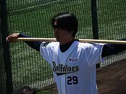 ![]() Igawa pitching for the Orix Buffaloes at Hanshin Koshien Stadium | |
