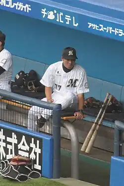 ![]() Kenji Yoshitsuru, coach of the Chiba Lotte Marines, at Chiba Marine Stadium. | |