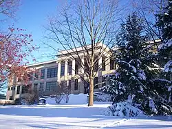 The team was established in 1914 at the new Kent State Normal School, which was established in 1910 and had its first classes in 1912 at temporary locations. The new campus opened in May 1913. The team is the second intercollegiate athletic team at Kent State, formed just after the men's basketball team, which was established in late 1913. H.E. Nickerson served as manager and William Brown was captain of that first team in 1914. No records of any games are available, though a photo of that team, labeled as the "Ex Temporé Base Ball Team", exists from that season.[2] The following year, the "Normal Nine", coached by school custodian Alexander Whyte, played their first recorded intercollegiate games, opening the season with a 7–6 win over Baldwin Wallace College in Kent. The team finished 1–3 that season and games were held on an informal field in front of the campus, which is now largely occupied by Rockwell Hall.[3][4] Alf Lovall coached the team to a 1–2 record in 1916 and Paul Chandler led the team to a 3–0 record in 1922. The records for the 1917–21 and 1923–25 seasons are incomplete, though it was during the 1923 season that the various Kent State Normal College teams began being referred to as the Silver Foxes. The team also began play at Rockwell Field around 1920, their home field through the 1941 season.[5]