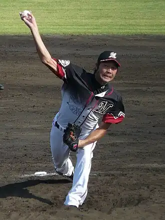 Kentaro Hashimoto (橋本 健太郎, Hashimoto Kentarō; born April 28, 1980) is a Japanese professional baseball pitcher. He was born in Yao, Osaka. He is currently playing for the Chiba Lotte Marines of the NPB.[1]