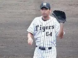 He got 10 appearances in 2011, but recorded no wins and a 3.50 ERA. He spent the next year pitching in the Western League (farm), where he finished with a 5-1 record and 2.61 ERA out of 22 games. He got a handful of appearances with the main squad in the next two seasons, but he spent the majority in the farm. After making just 22 appearances in 4 years for Orix, he was traded to the Hanshin Tigers at the end of the 2014 season for pitcher Hirokazu Shiranita[1] as Orix was short of starters and Hanshin was short of relievers.[2] He inherited Shiranita's former jersey number, 64.[3]
