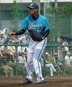 He entered Nara Sangyo University and pitched regularly in the Kinki University Baseball League. In the spring of 2007, he pitched a perfect game against Nara University, earned 6 wins and helped his team win the league championship for the 3rd consecutive tournament. In all his 47 league appearances, he finished with a 26-2 win–loss record, 1.38 ERA and 255 strikeouts, and won one MVP, one Best Pitcher Award, a Fighting Spirit Award (Kantoushou 敢闘賞) and got selected into the Best Nine 3 times.
