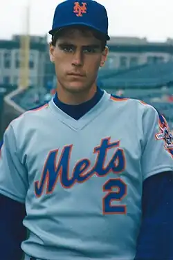 Elster was drafted by the New York Mets in the second round of the January 1984 draft out of Golden West College in Huntington Beach, California.[2] He batted .269 with fourteen home runs and 135 runs batted in over three seasons in the Mets' farm system when he received a somewhat surprising September call up to the majors in 1986 with the Mets on the verge of capturing the National League East.[3] He made his major league debut as a late inning defensive replacement on September 2 against the San Francisco Giants,[4] and got his first major league hit in his first major league at bat the following day.[5] Over the remainder of the season, Elster batted .167 with three runs scored. He had one extra base hit, a double off the Philadelphia Phillies' Kevin Gross.[6] He appeared in four games of the 1986 National League Championship Series against the Houston Astros,[7] and game six of the 1986 World Series against the Boston Red Sox.[8] In four postseason at bats, he had no hits.