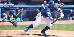 In 2010, as a junior he set an NCAA Division II record at the school, with a 54-game hitting streak, five games more than the prior record.[4][12][19] Eight times during the streak he kept it alive with a hit in his final at bat.[20] Batting .379 for the season, he was also named a Rawlings/ABCA National Gold Glove Award winner, ESPN the Magazine/CoSIDA Academic 1st-team All-District, an Honorable Mention All-American by NCBWA, 1st-team Daktronics/NCAA, NCBWA and Rawlings/ABCA All-West Region, and 1st-team All-CCAA selection, giving him three All-CCAA honors in three years.[21] In his senior year, he batted .369 with a 1.000 fielding percentage.[22][23]