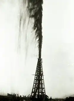 Name originated from the gushing of oil that shoots out of tops of oil wells, also called a blowout[2]