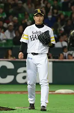 - ^ "Nishinippon Sports baseball news (Japanese) ソフトB千賀 日本S初星 育成出身初!!シリーズ初戦先発". Nishinippon Shimbun (in Japanese). October 29, 2017. Retrieved March 13, 2021.