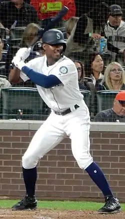 The Mariners selected Lewis' contract and promoted him to the major leagues on September 10, 2019.[20] Lewis hit a home run off Trevor Bauer in his major league debut that night versus the Cincinnati Reds.[21][22] He hit home runs in each of his next two games as well, becoming the second player in history, after Trevor Story, to homer in each of his first three major league games.[23] He finished the 2019 season with a .268/.293/.592 slash line along with 6 home runs and 13 RBIs in 71 at bats.