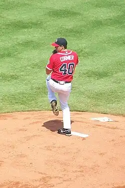 After being brought back up to the majors in July, he recorded his first big-league RBI on July 24.[11] On July 29, Cormier beat the Houston Astros, 6–4. He pitched six innings while striking out five, and recorded his first major league hit.[12] He made a move to the bullpen after losing his next two games. From August 29 to September 11, batters only hit .136 off Cormier. In his first Major League action, he was 1–4 with an 8.14 ERA in 17 games (five starts).[13]