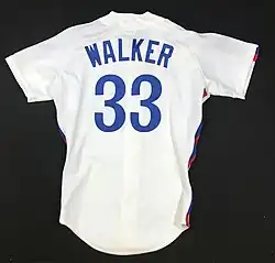 Walker made his debut with the Montreal Expos on August 16, 1989. He walked twice in the game while hitting a single in his first at bat, off Mike LaCoss of the San Francisco Giants.[14] He struggled in his debut, batting .170 with a .264 OBP and .170 SLG in 56 plate appearances.[5] Montreal fans gave him the nickname "Booger."[15]