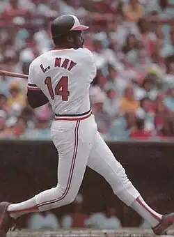 Nicknamed "The Big Bopper" for his power hitting, May produced at least 20 home runs and 80 runs batted in (RBI) for 11 consecutive seasons, and is one of only 11 major league players to have 100-RBI seasons for three different teams.[2] He was a three-time All-Star player and was the American League (AL) RBI champion in 1976.[1] May appeared in the postseason three times, including the 1970 World Series for the Reds and the 1979 World Series for the Orioles as well as the 1981 postseason with the Royals.