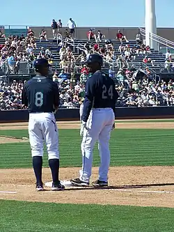 ![]() Tinsley (left) talking to Ken Griffey Jr. | |