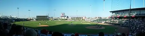 Before the start of the 2008 season, the left field berm area was replaced with permanent bleacher seats. Additional metal bleachers were added on the concourse running from behind the former left field berm to the bullpens in center field. This added 2,172 to the ballpark's fixed seating capacity, raising it from its originally 4,365 fixed seats.[7]