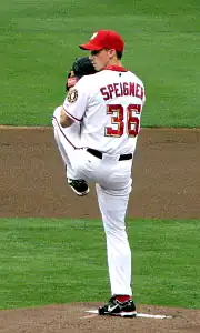 ![]() Speigner pitching for the Nationals on June 2, 2007. | |