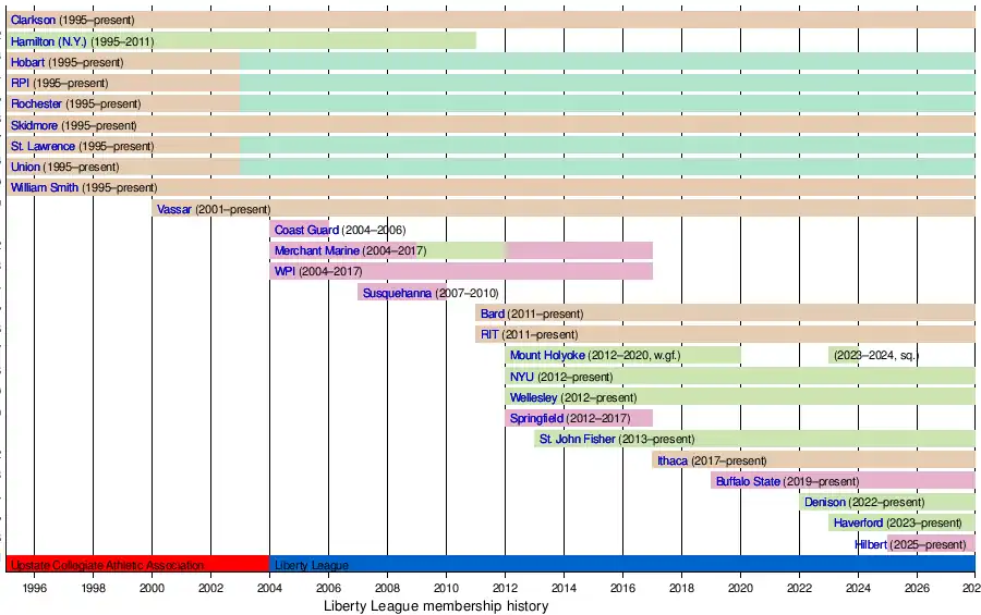 - Ithaca College joined the Liberty League in the 2017–18 academic year.