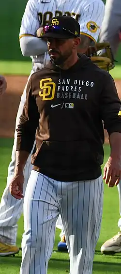 The San Diego Padres are an American professional baseball team based in San Diego. The Padres compete in Major League Baseball (MLB) as a member club of the National League (NL) West Division. The team joined MLB in 1969 as an expansion team and have won two NL Championships, in 1984 and 1998. The team played their home games at San Diego Stadium from 1969 to 2003. Starting with the 2004 season, they moved to Petco Park, where they have played since.[1] The team is owned by the estate of Peter Seidler, and A. J. Preller is their general manager.[2] There have been 21 managers for the Padres franchise.[3] The team is currently managed by Mike Shildt.[4]
