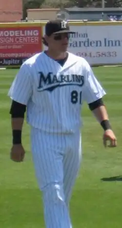 Justis Logan Morrison (born August 25, 1987), nicknamed "LoMo", is an American former professional baseball first baseman and left fielder. He played in Major League Baseball (MLB) for the Florida/Miami Marlins, Seattle Mariners, Tampa Bay Rays, Minnesota Twins, Philadelphia Phillies and Milwaukee Brewers. He was the 2008 Florida State League MVP, and played in the 2010 All-Star Futures Game. Entering the 2010 baseball season, Morrison was considered by Baseball America to be the #2 prospect in the Florida Marlins farm system, and the #20 overall prospect. That season he made his major league debut with the Marlins.