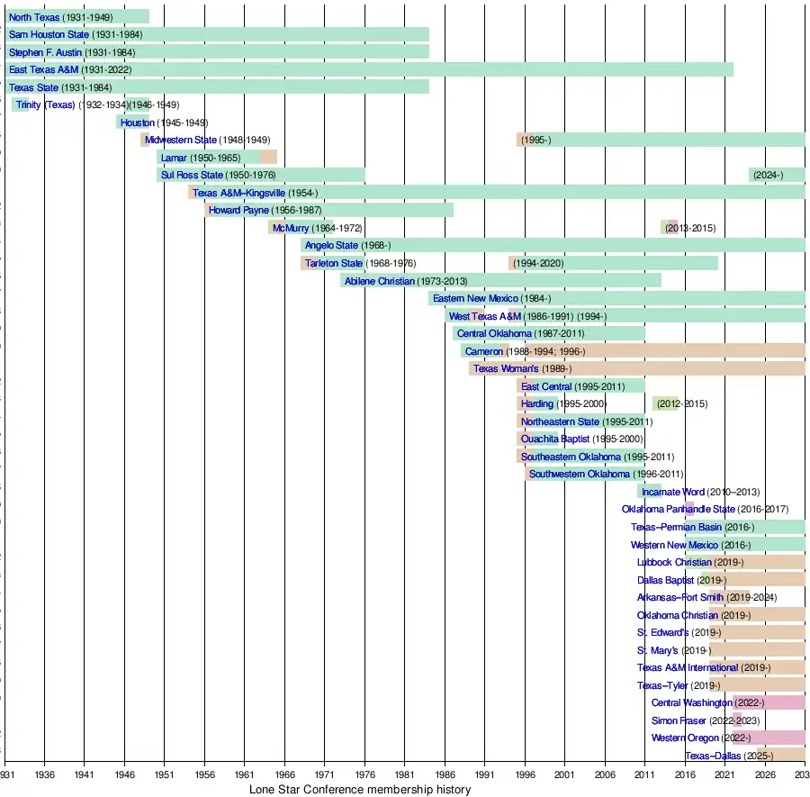 - ^ "Sul Ross State to join the LSC on July 1, 2024" Lone Star Conference. Retrieved July 26, 2023.