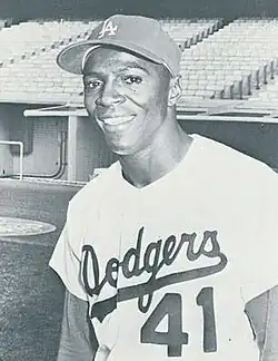 Johnson did not establish himself as a big-league regular until he was almost 31 years old. He had trials with the Chicago Cubs (34 games played in 1960), Los Angeles Angels (only one appearance in 1961), and Milwaukee Braves (61 games in 1962). Only after he was summoned to the Los Angeles Dodgers from Triple-A Spokane, when the Dodgers lost regular outfielder Tommy Davis to a broken ankle on May 1, 1965, did Johnson earn a foothold in the major leagues.[2] He became the Dodgers' regular left fielder during their 1965 world championship season, started over 60 games in both left and right fields in 1966 (during which the Dodgers captured their second straight National League pennant), and started another 85 games in the Dodger outfield in 1967.[1]