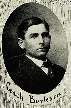 Burleson was also the head football coach at Daniel Baker College in Brownwood, Texas in 1909 and Trinity University in San Antonio, Texas in 1913 and 1918.[1][2] Burleson played football and baseball at Trinity.[3]