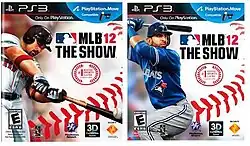 ![]() MLB 12: The Show covers, featuring Adrián González of the Boston Red Sox (left, American cover) and José Bautista of the Toronto Blue Jays (right, Canadian cover) | |