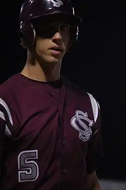 Bumgarner attended South Caldwell High School in Hudson, North Carolina, where he was known as "Maddie" and played on both the school's baseball team and the Post 29's American Legion Baseball team.[7] In his junior season, he had a 12–2 win–loss record, an 0.99 earned run average (ERA), and 120 strikeouts in 84 innings pitched as he helped his team to a runner-up finish in the 2006 North Carolina 4A State Championship. The next season as a senior, he went 11–2 with a 1.05 ERA and 143 strikeouts in 86 innings, helping his team win the 2007 4A State Championship.[8] He hit .424 with 11 home runs and 38 runs batted in (RBIs).[7] He was named most valuable player (MVP) of the playoffs and the Gatorade North Carolina Player of the Year, garnering the nickname "The Carolina Peach." Bumgarner attracted so much attention from scouts and agents in high school that his father built a wall around the bullpen at his high school field to keep them from distracting him as he warmed up.[5] He committed to attend the University of North Carolina at Chapel Hill on a college baseball scholarship.[8]