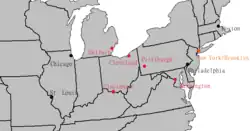 The Major League Baseball relocations of the 1950s–1960s brought several Major League Baseball franchises to the Western and Southern United States, expanding the league's geographical reach. This was in stark contrast to the early years of modern baseball, when the American League placed teams in National League cities. Chicago, Boston, Philadelphia, and St. Louis had two teams; New York City had three. With no teams west of St. Louis or south of Washington, D.C., baseball was effectively confined to the Northeast and Midwest.