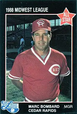 ![]() Bombard with the Cedar Rapids Reds c. 1988 | |