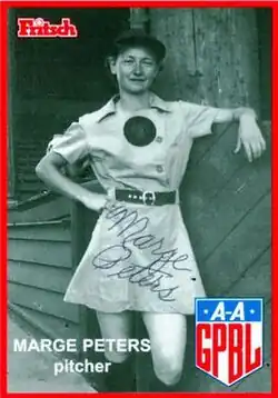 Marjorie L. Peters (September 11, 1918 – April 1, 2016)[1] was an American baseball player. She was a pitcher who played from 1943 to 1944 in the All-American Girls Professional Baseball League (AAGPBL). Listed at 5 ft 2 in (1.57 m), 112 pounds (51 kg), she batted and threw right-handed.[2]