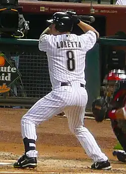 Mark David Loretta (born August 14, 1971) is an American former professional baseball infielder. He played 15 seasons in Major League Baseball (MLB) between 1995 and 2009 for the Milwaukee Brewers, Houston Astros, San Diego Padres, Boston Red Sox, and Los Angeles Dodgers.