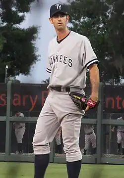 Prior signed a one-year minor league contract with the New York Yankees for the 2011 season, though he was an unlikely candidate to make the Yankees' roster because their only projected vacancy was for a long reliever.[76][77] Prior was assigned to start the year with the Single-A advanced Tampa Yankees in Florida rather than joining the colder weather Triple-A Scranton/Wilkes-Barre Yankees in order to work on his transition to a relief pitcher.[78] After just four games, he was promoted to Scranton on April 20 but promptly placed on the disabled list with a groin injury.[79] Ultimately, Prior would make 11 appearances in the minor leagues for the Yankees, only one of which was at Triple-A.[74] He was granted free agency on November 2, 2011.[80]