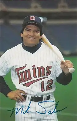 - ^ Orlando Sentinel, "TUESDAY'S NOTEBOOK"(June 5, 1985, Sports Section, Page D3); "..and rookie catcher Mark Salas, who is of Mexican descent, the Twins' minority percentage is 12 percent."