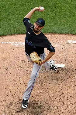 Barnes was traded to the Miami Marlins on January 30, 2023, in exchange for relief pitcher Richard Bleier.[41] In 24 appearances for Miami, Barnes posted a 5.48 ERA with 20 strikeouts in 21+1⁄3 innings pitched. On July 14, it was announced that Barnes would undergo femoral acetabular impingement surgery on his left hip, and likely miss the remainder of the season.[42] He became a free agent following the season.