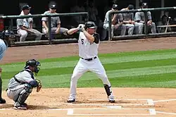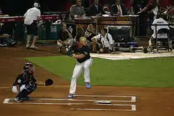 Holliday was selected to Team USA for the 2006 World Baseball Classic prior to the start of the MLB season.[32] Despite batting just .255 through May 1, 2006, Holliday accumulated 24 RBI in 25 games.[33] From May 1 until the end of the season – a span of 131 games – he collected 169 hits for a .339 batting average, the fourth-highest in the major leagues.[33] He batted .404 from June 1–27, second in the NL in that period.[34] An All-Star selection to the game at PNC Park in Pittsburgh for the first time in his career, Holliday was hitting .339 with 16 home runs and 56 RBI at the time of his selection.[35] In the game, Holliday played right field for the first time as a major leaguer.[33]