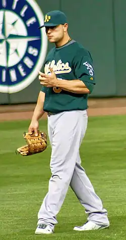 Holliday filed for free agency on November 5.[117] He finished 16th in the NL MVP voting—including a fourth-place vote—despite playing nearly 100 games in the American League.[118] Both trades involving Holliday were later panned as failures for the A's, as two of the players they dealt away became multiple All-Stars.[119][120] One was González, who won the 2010 batting title, Silver Slugger and Gold Glove Awards with the Rockies.[121] Street was the other All-Star.[122][123] Jesse Spector of Sporting News augured that the second deal was a "landslide win" for the Cardinals, even if they had never resigned Holliday in his free agency.[124]