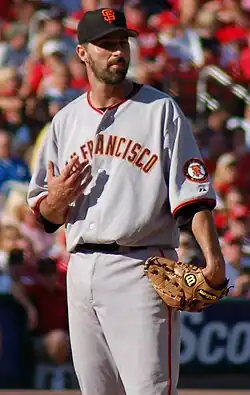 Matthew Christian Morris (born August 9, 1974) is an American former professional baseball pitcher. He played in Major League Baseball (MLB) from 1997 through 2008, most notably as a member of the St. Louis Cardinals, where he was a two-time All-Star and led the National League in 2001 with 22 wins. After playing nine seasons with the Cardinals, he played his last three seasons with the San Francisco Giants and Pittsburgh Pirates.