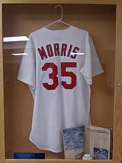 In 1999, he underwent Tommy John surgery after he was injured in spring training.[7] Morris became the ace of the Cardinals' pitching staff in 2001, earning his first All-Star selection and a third-place finish in the NL Cy Young voting. He won 22 games with 185 strikeouts and a 3.16 ERA. In 2002, he won 17 games and made his second All-Star appearance.