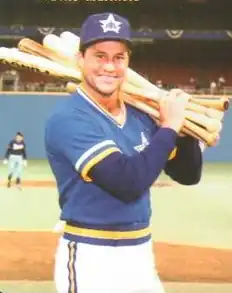 Young was born in Pasadena, California in 1958, and attended the University of California, Los Angeles (UCLA). While at UCLA, he was drafted by the Seattle Mariners in the second round (32nd overall) of the 1980 Major League Baseball draft.[1] He made his major league debut in 1983 with the Mariners, eventually finishing the season with an 11–15 record games over 203+1⁄3 innings, with a 3.27 earned run average in 33 games (32 starts), good enough to rank in the top ten for ERA that season.[2] He represented the Mariners in the 1983 Major League Baseball All-Star Game, where he pitched a scoreless eighth inning facing Johnny Bench, Darrell Evans and Pedro Guerrero.[3]