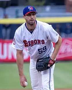 Maxwell Martin Scherzer (born July 27, 1984), nicknamed "Mad Max", is an American professional baseball pitcher who is a free agent. He has previously played in Major League Baseball (MLB) for the Arizona Diamondbacks, Detroit Tigers, Washington Nationals, Los Angeles Dodgers, New York Mets, Texas Rangers and Toronto Blue Jays. A right-handed starting pitcher, Scherzer is an eight-time MLB All-Star, has won three Cy Young Awards, has pitched two no-hitters, and is a two-time World Series champion, winning with the Nationals in 2019 and the Rangers in 2023. He is regarded as one of the best pitchers in baseball history.