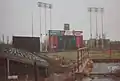 The park had a disjointed, skeletal feel; it was obvious that it had once been a minor league baseball stadium. For instance, when bleachers were erected to expand the stadium for the Twins, no concourse was built to connect them to the rest of the stadium. Due to this design flaw, fans in the bleachers literally had to leave the stadium to get to the grandstand.[18] Unlike most multipurpose stadiums built during this time, there were very few bad seats for baseball. The stadium was built using cantilever construction for the overhanging decks, eliminating posts that blocked the fans' view.[8] It was well known as a hitter's park; its short foul lines—343 feet (105 m) to left (east), 330 feet (101 m) to right (south)—were particularly friendly to pull hitters such as Harmon Killebrew. The 330 marker in right was actually closer to right-center, leading to speculation that right field was even closer.[6][19] Since the Met was built in 1956, however, this would not have been a problem for the Twins; baseball required all parks built after 1958 to have foul lines of at least 325 feet (99 m).[20] Met Stadium distance signs included meters 1974–77. The diamond was aligned southeast (home plate to center field); recommended alignment is east-northeast.[21]