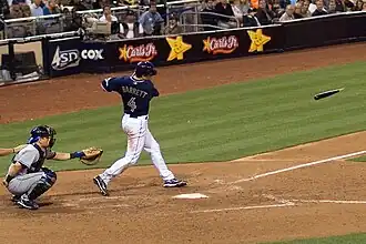Barrett sought to improve his numbers in the 2006 season, but ran into several obstacles. On May 20, 2006, Barrett was involved in an infamous altercation with A. J. Pierzynski during the Chicago Crosstown Classic between the Chicago White Sox and Cubs. During the game's second inning, Brian Anderson hit a sacrifice fly, which allowed Pierzynski to score the game's first run.[30] Pierzynski collided with Barrett en route to home plate, causing Barrett to fall down.[31] Pierzynski showed his enthusiasm by slapping home plate. As Pierzynski got up, he bumped into Barrett, who proceeded to punch him.[31] Scott Podsednik came to Pierzynski's aid and subdued Barrett.[31] Anderson and John Mabry eventually joined the brawl before both teams emptied their dugouts and stormed the field.[31] The game's umpires ejected Barrett, Pierzynski, Anderson, and Mabry.[31] Barrett later received a ten-game suspension, while Pierzynski was fined.[32] Additionally, Anderson and the Sox' third base coach were also suspended for a fewer number of games.[32] The Cubs went on to lose the game by a score of 7–0.[30] On June 30, the two met during batting practice, and made amends.[33][32] Barrett rebounded after the incident, and batted over .300 in the final four months of the season.[24] He suffered an intrascrotal hematoma in early September, and was forced to miss the rest of the season. The injury and suspension caused Barrett to miss a significant portion of the season.[34] In his shortened season, Barrett hit 16 home runs, which matched his previous career high, and nearly surpassed his hit total from 2005.[1]